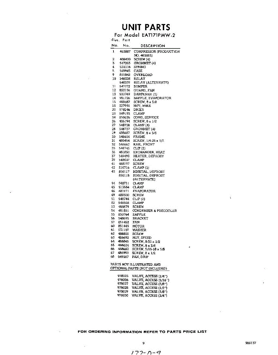 Parts for Whirlpool EAT171PMW2: 09 - Section Parts