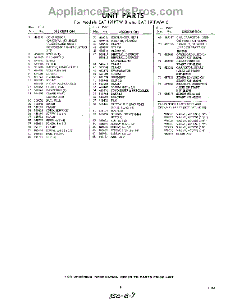 Parts for Whirlpool EAT191PMW0: 09 - Section Parts