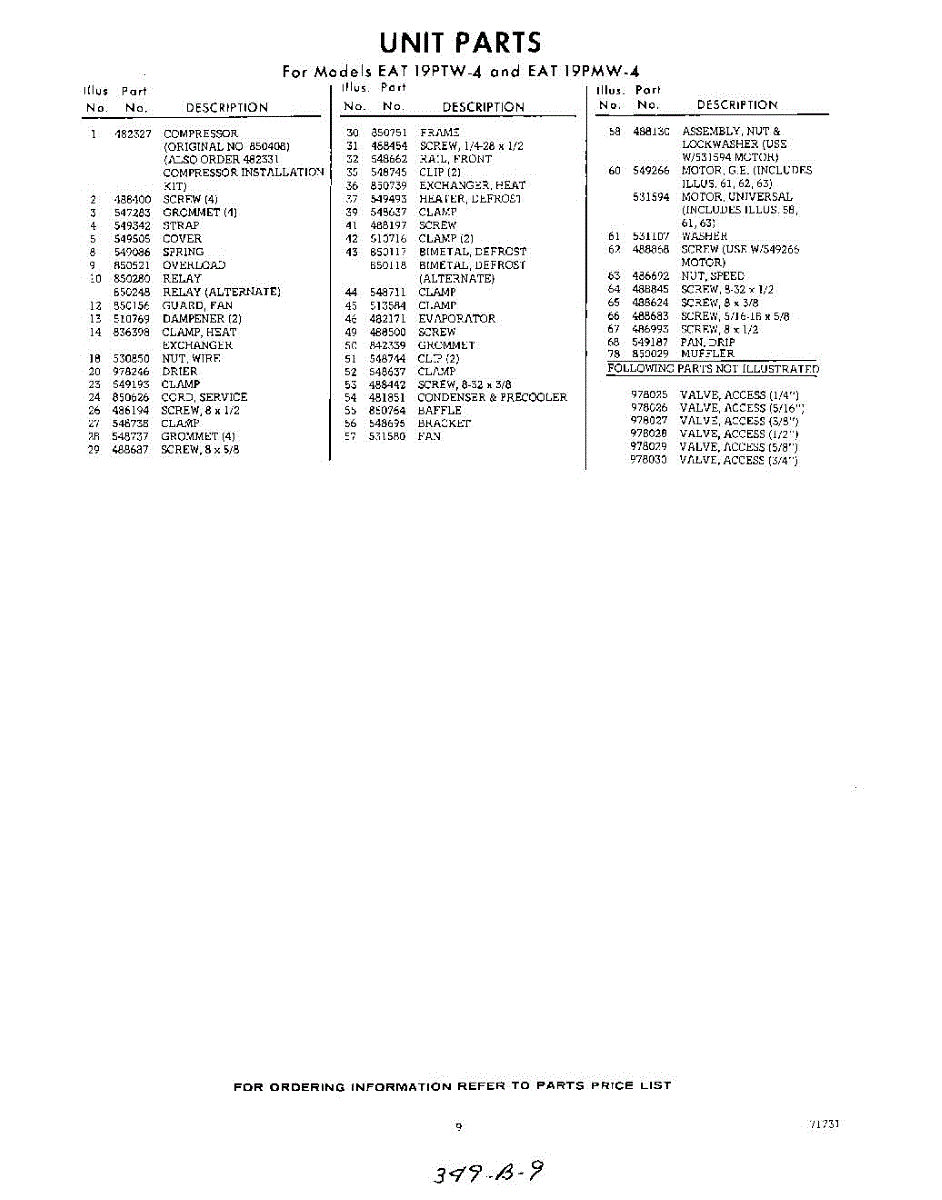 Parts for Whirlpool EAT19PMW4: 09 - Section Parts