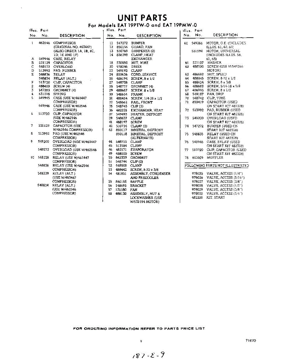 Parts for Whirlpool EAT19PTW0: 09 - Section Parts