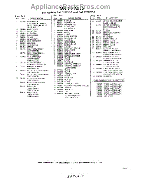 Parts for Whirlpool EAT19PTW3: 09 - Section Parts