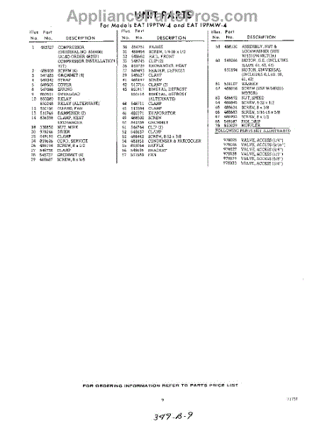 Parts for Whirlpool EAT19PTW4: 09 - Section Parts