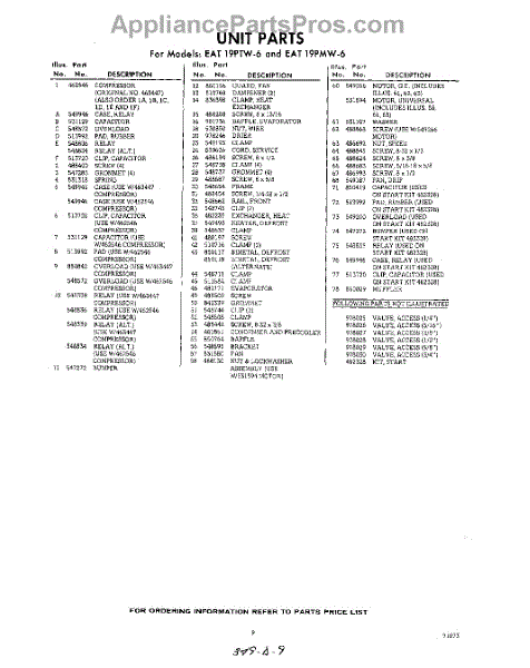 Parts for Whirlpool EAT19PTW6: 09 - Section Parts