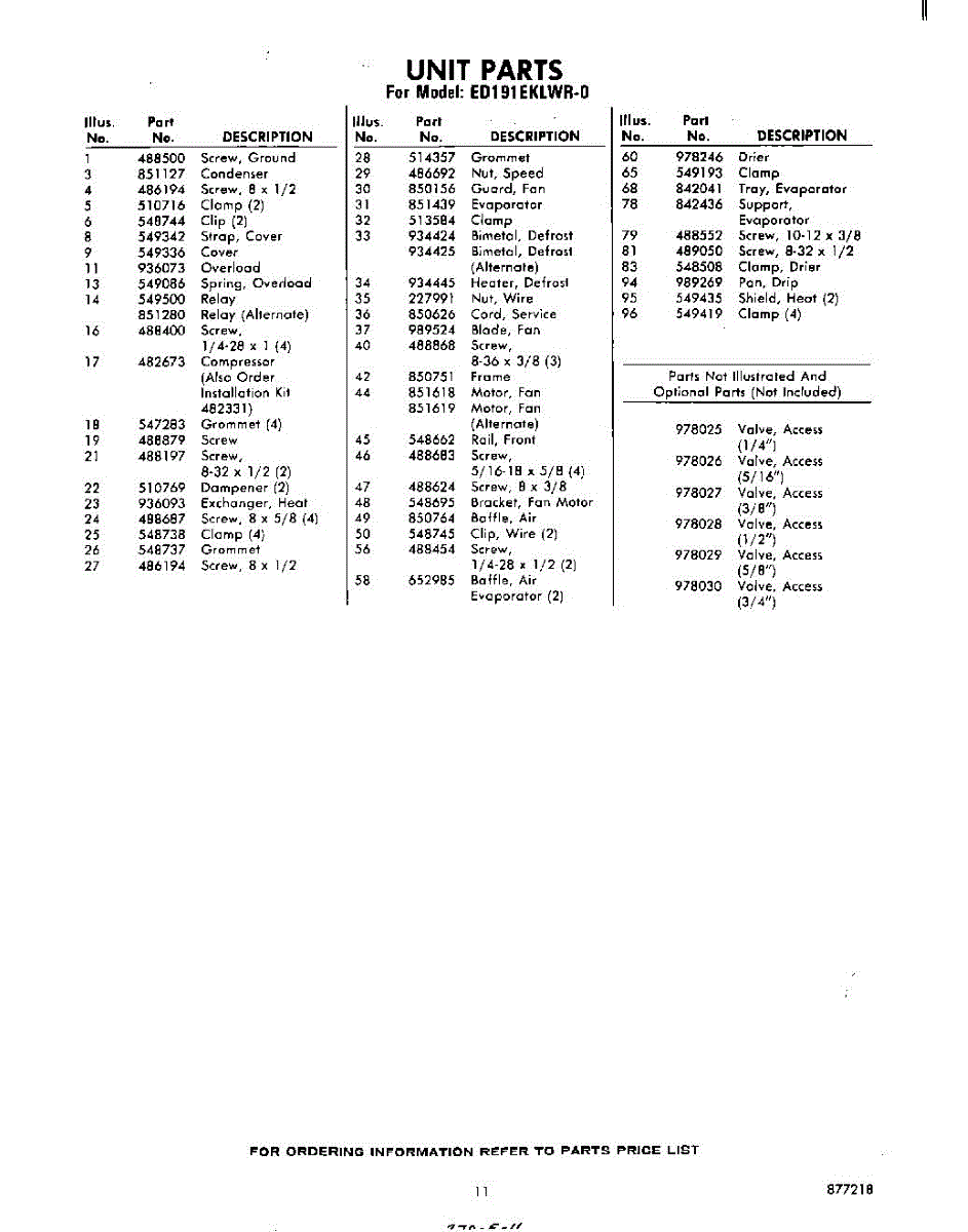 Parts for Whirlpool ED191EKLWR0: 11 - Section Parts