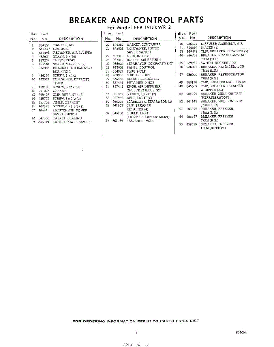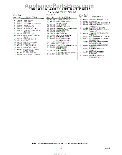 Parts for EEB191EKWR2
