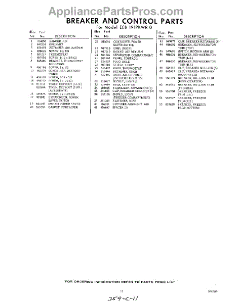 Parts for Whirlpool EEB191PKWR0: 11 - Section Parts