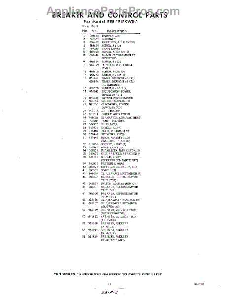 Parts for Whirlpool EEB191PKWR1: 11 - Section Parts