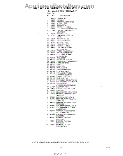 Parts for EEB191PKWR2