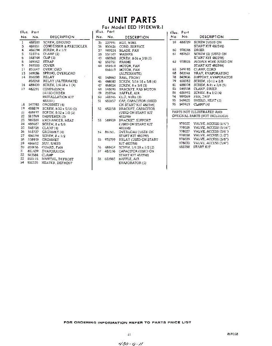 Parts for EED191EKWR1