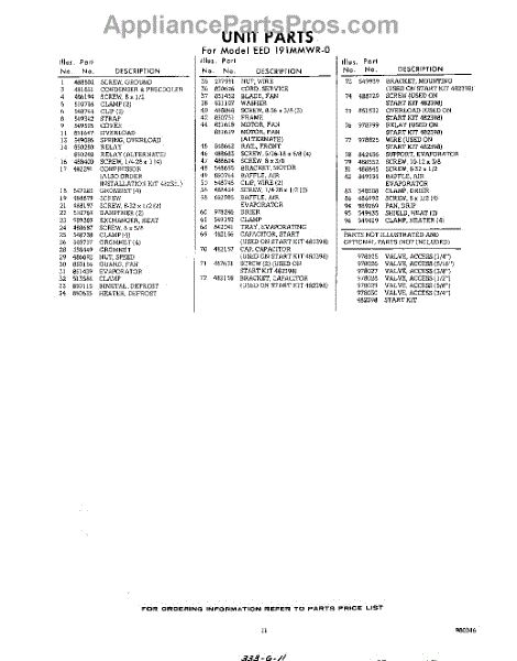 Parts for Whirlpool EED191MMWR0: 11 - Section Parts