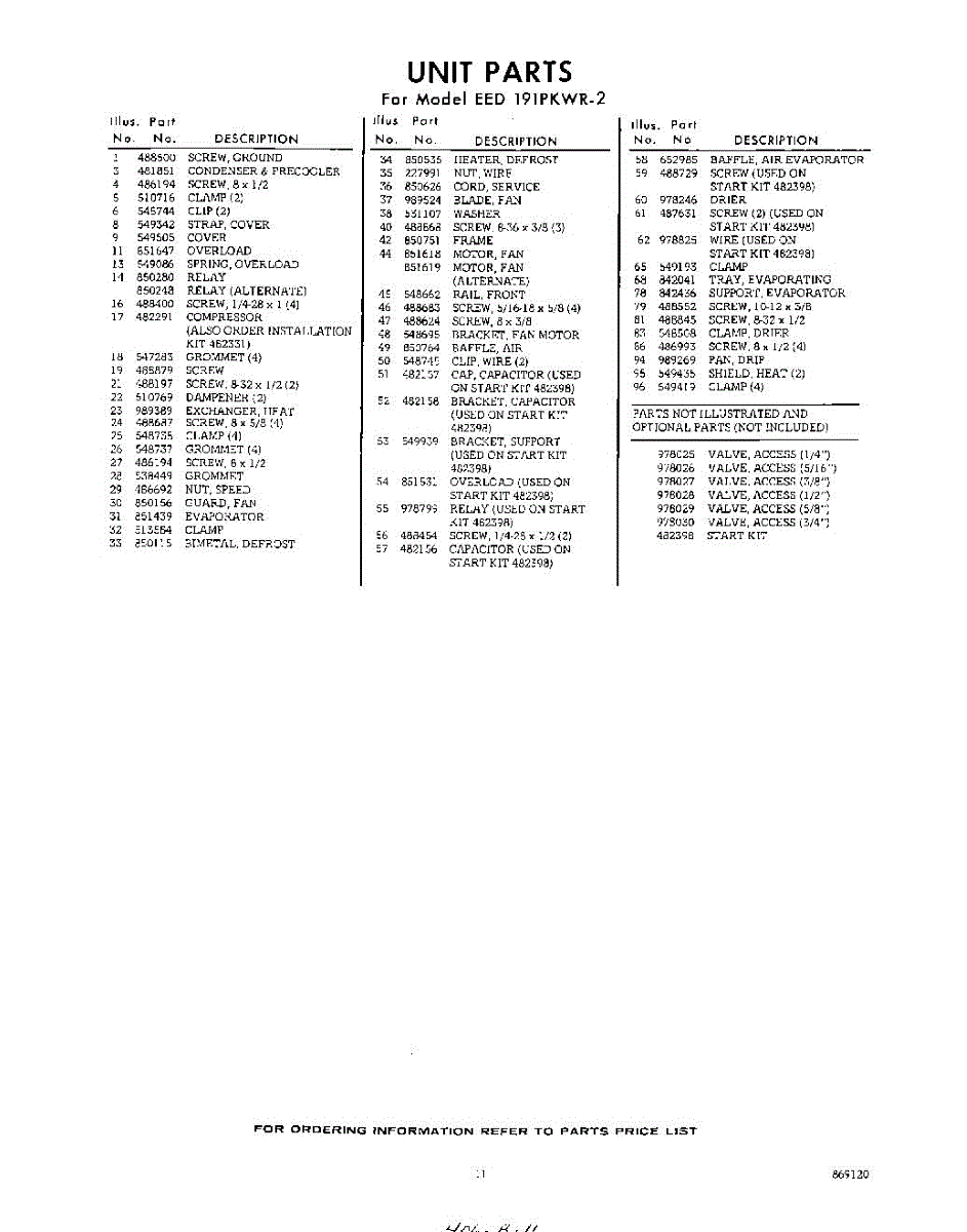 Parts for EED191PKWR2