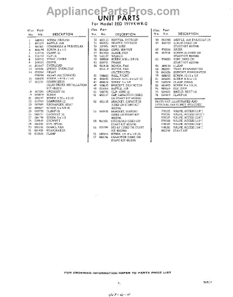 Parts for Whirlpool EED191VKWR0: 11 - Section Parts