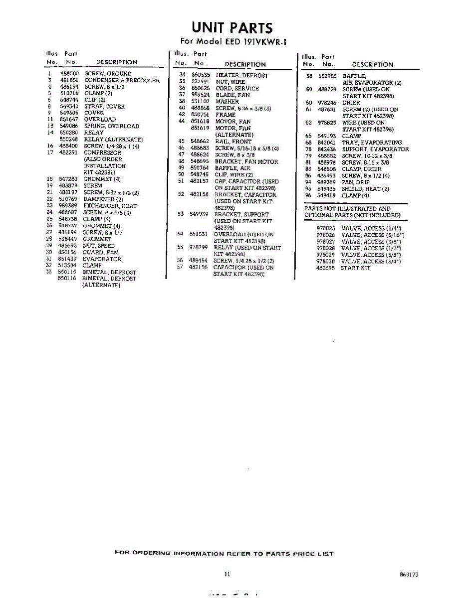 Parts for Whirlpool EED191VKWR1: 11 - Section Parts