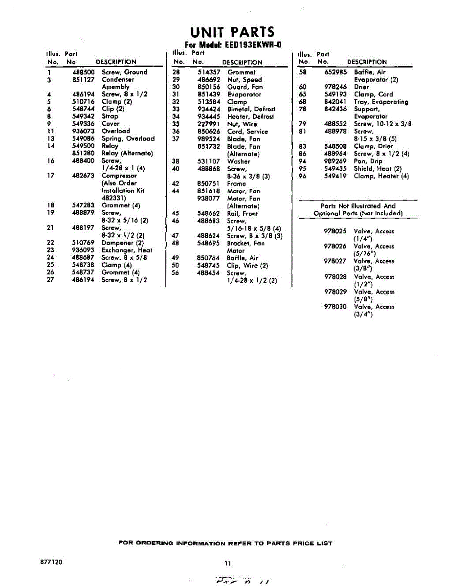 Parts for Whirlpool EED193EKWR0: 11 - Section Parts
