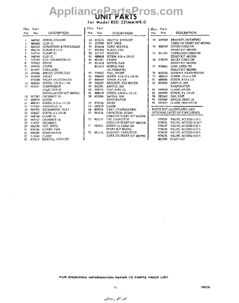 Parts for Whirlpool EED221MMWR0: 11 - Section Parts