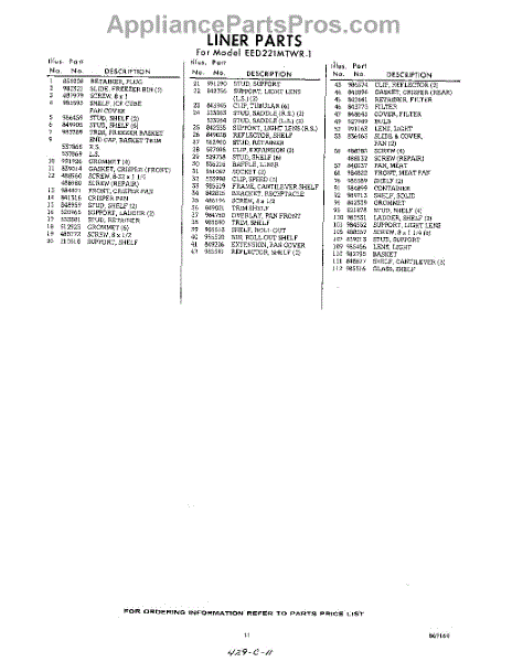Parts for Whirlpool EED221MTWR1: 11 - Section Parts
