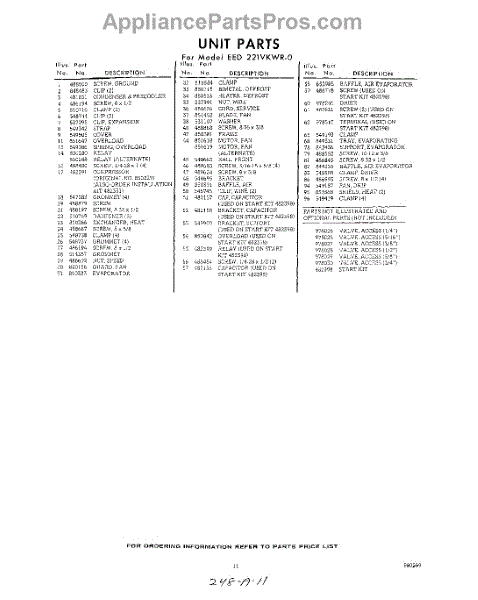 Parts for Whirlpool EED221VKWR0: 11 - Section Parts