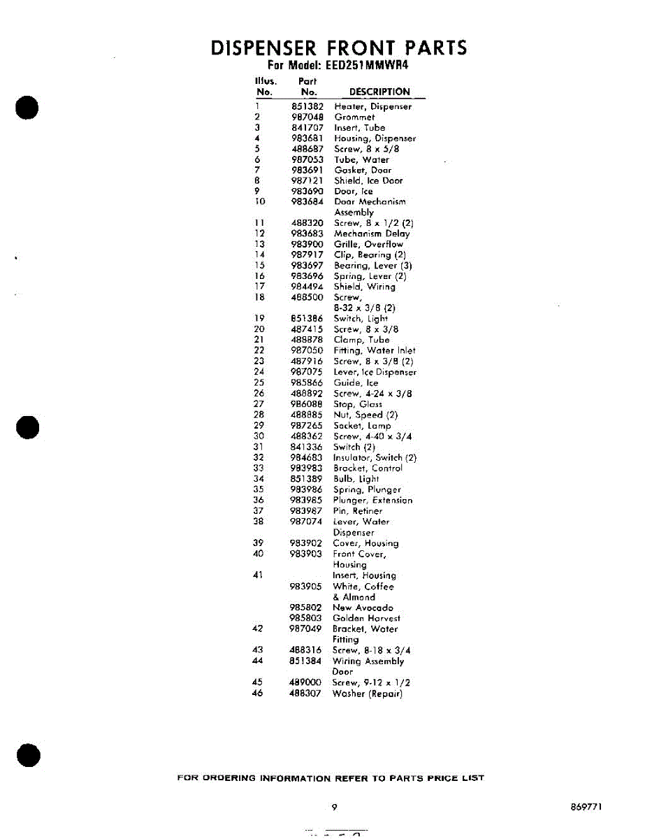 Parts for Whirlpool EED251MMWR4: 09 - Section Parts