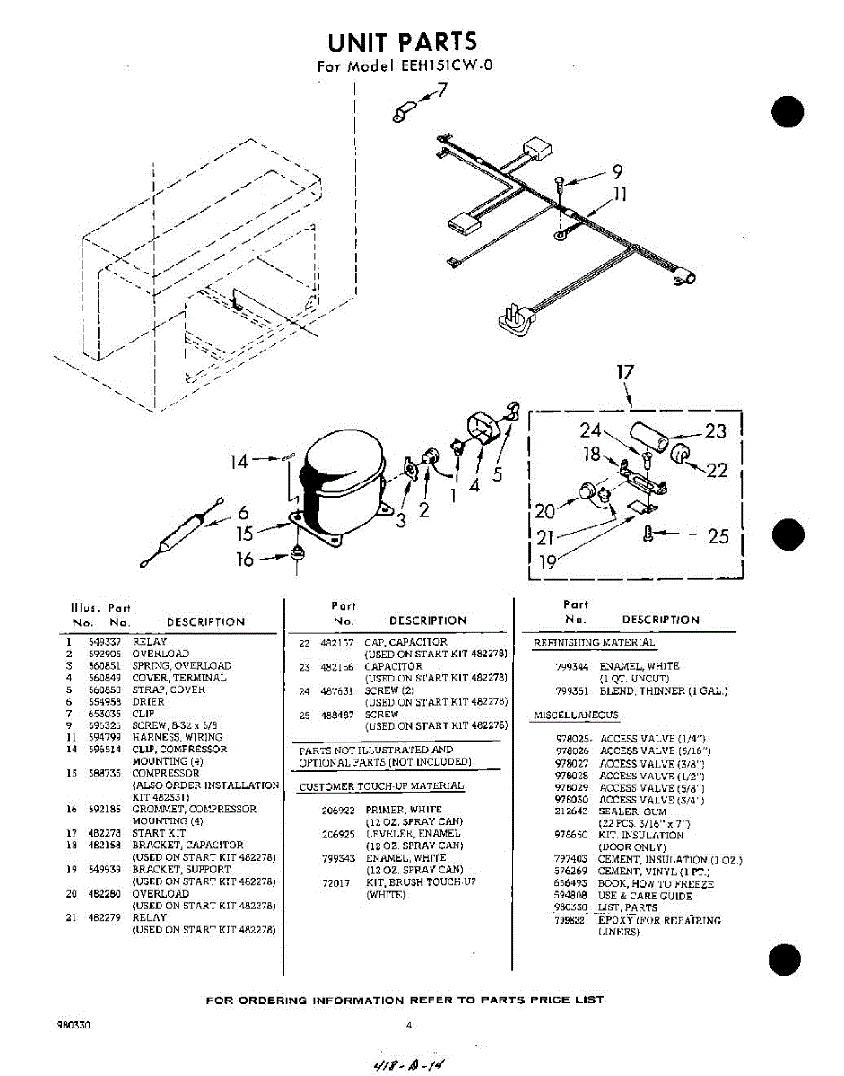 Parts for Whirlpool EEH151CW0: 04 - Section Parts