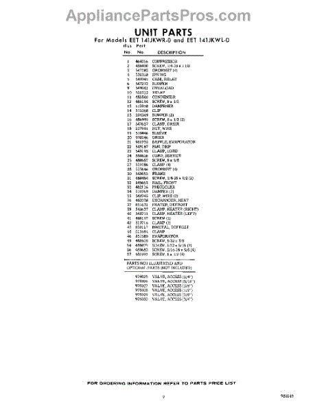 Parts for Whirlpool EET141JKWR0: 09 - Section Parts