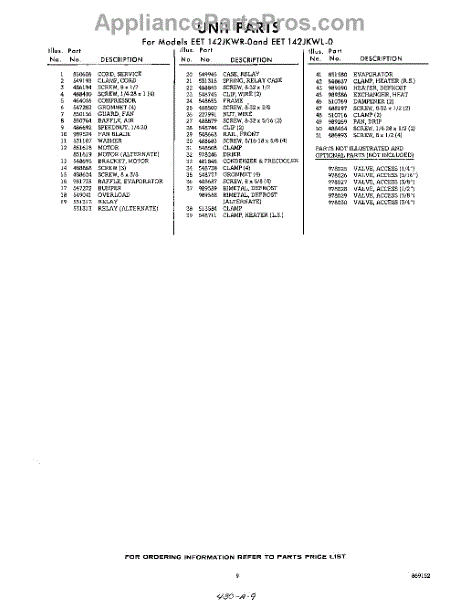 Parts for Whirlpool EET142JKWR0: 09 - Section Parts