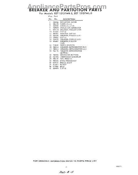 Parts for Whirlpool EET151DTWR0: 11 - Section Parts