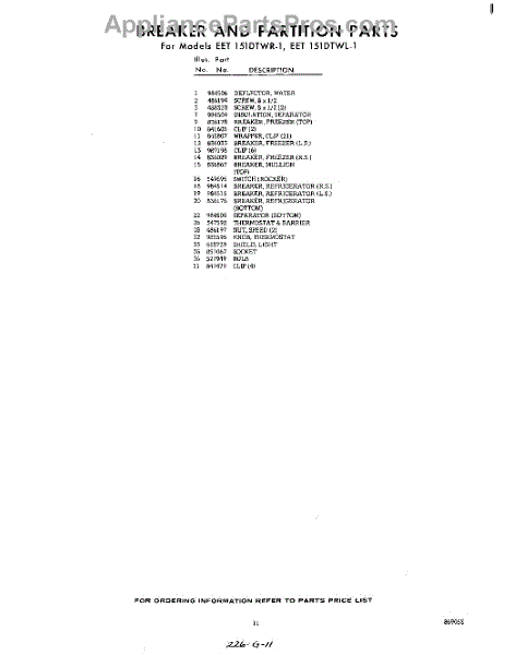 Parts for Whirlpool EET151DTWR1: 11 - Section Parts