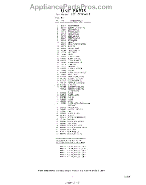 Parts for EET151PKWR2