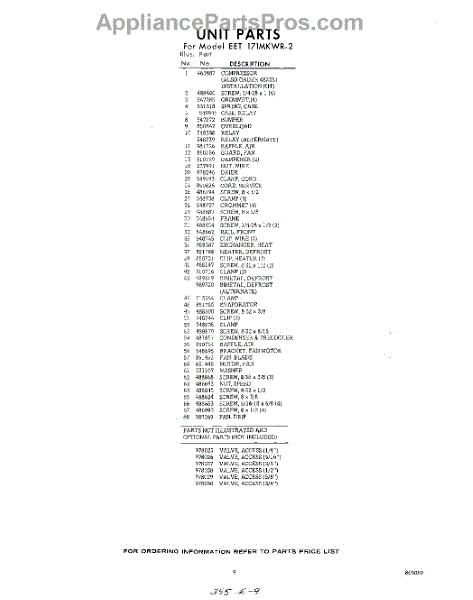 Parts for Whirlpool EET171MKWR2: 09 - Section Parts