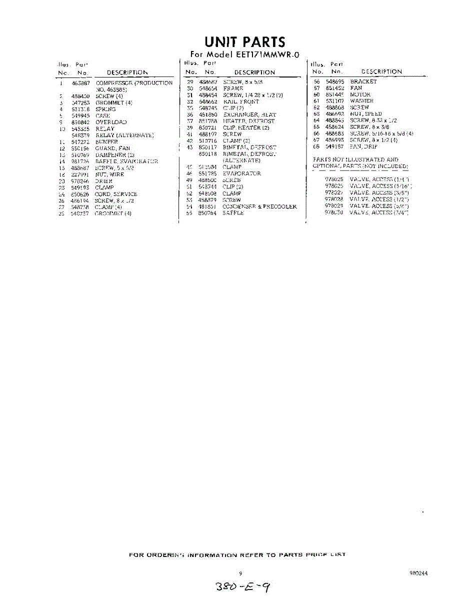 Parts for Whirlpool EET171MMWR0: 09 - Section Parts