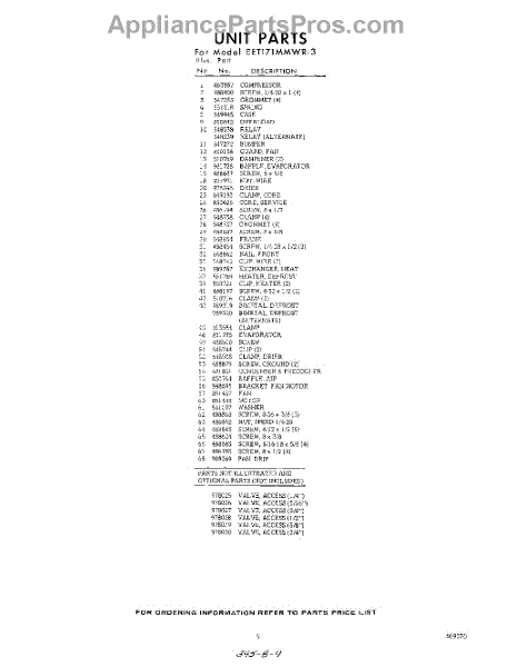 Parts for Whirlpool EET171MMWR3: 09 - Section Parts