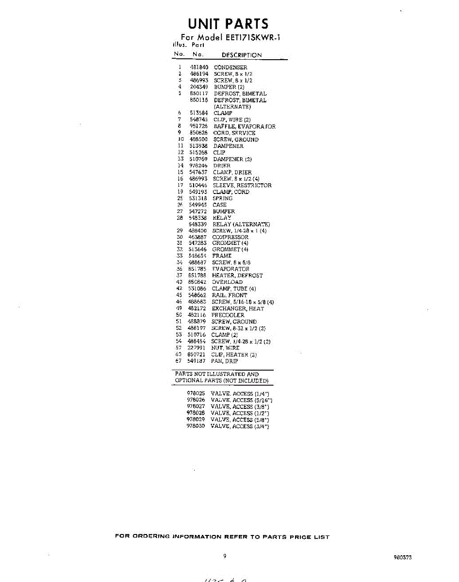 Parts for Whirlpool EET171SKWR1: 09 - Section Parts