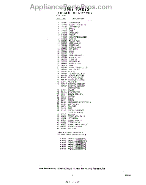 Parts for EET171VKWR2