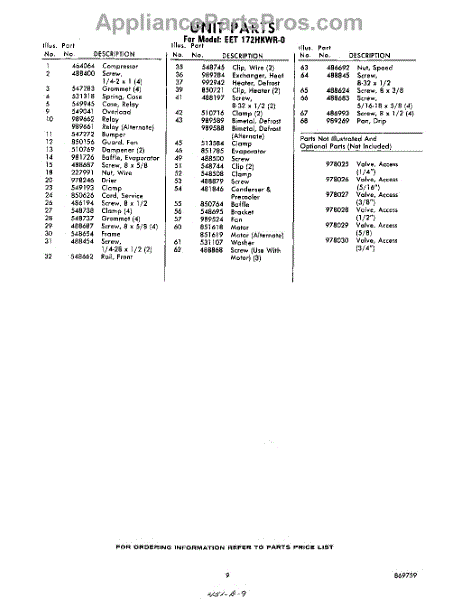 Parts for Whirlpool EET172HKWR0: 09 - Section Parts