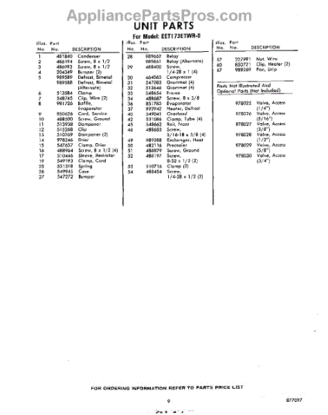 Parts for EET173ETWR0