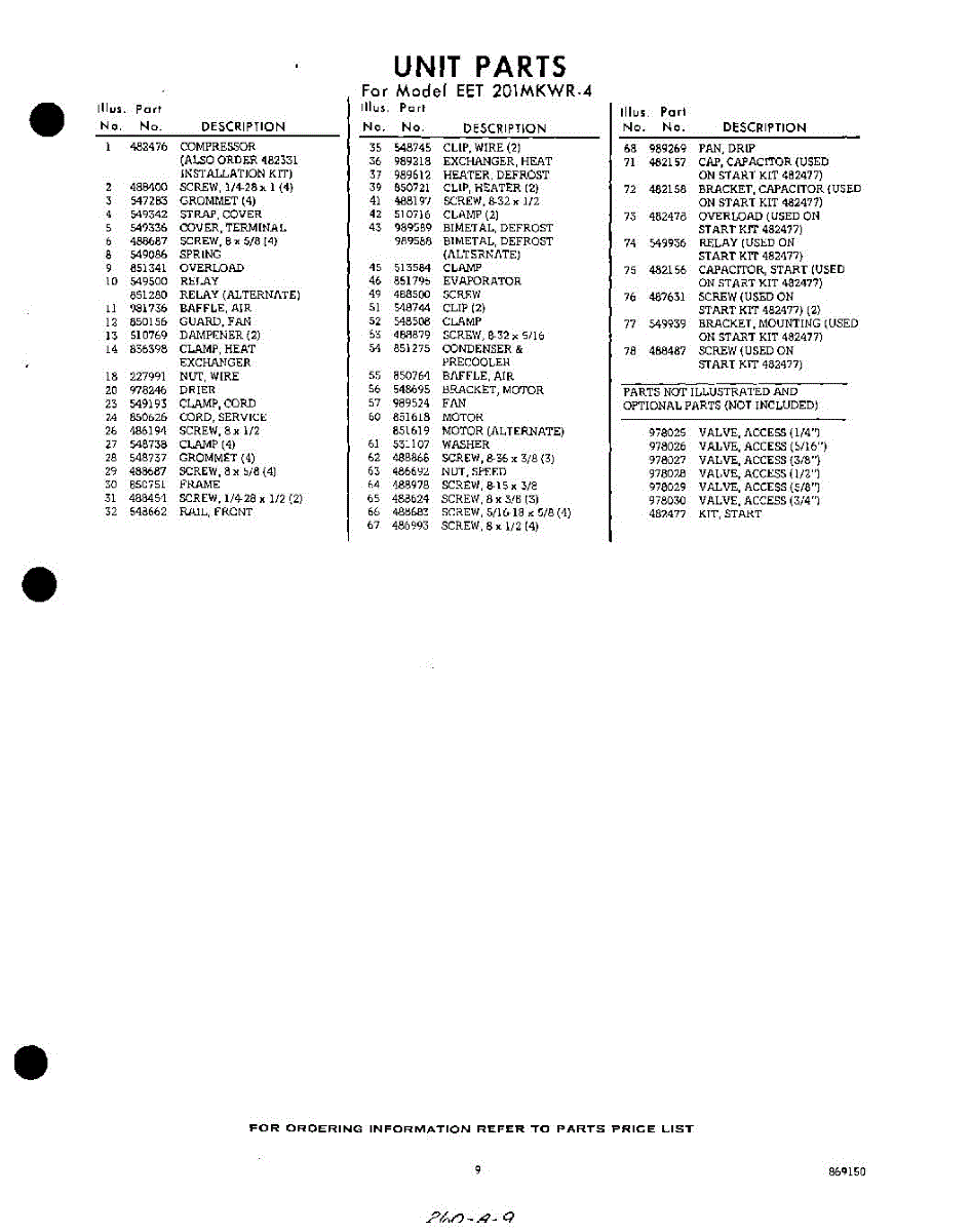 Parts for EET201MKWR4