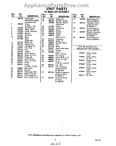 Parts for Whirlpool EET201ZKWR0: 09 - Section Parts