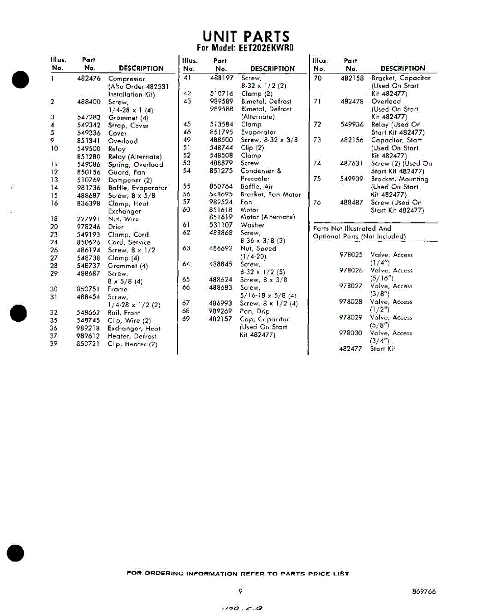 Parts for Whirlpool EET202EKWR0: 09 - Section Parts