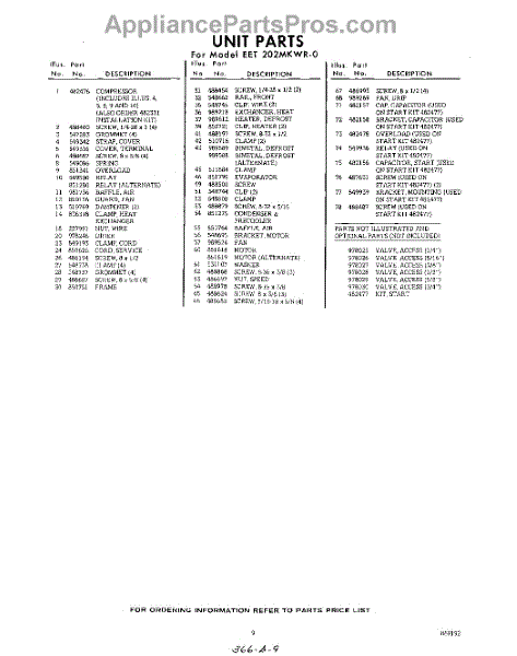 Parts for Whirlpool EET202MKWR0: 09 - Section Parts