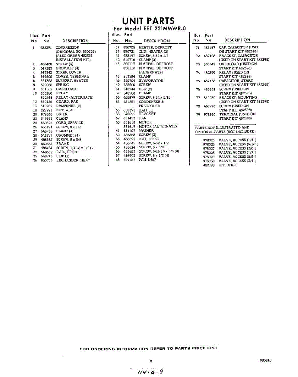 Parts for Whirlpool EET221MMWR0: 09 - Section Parts