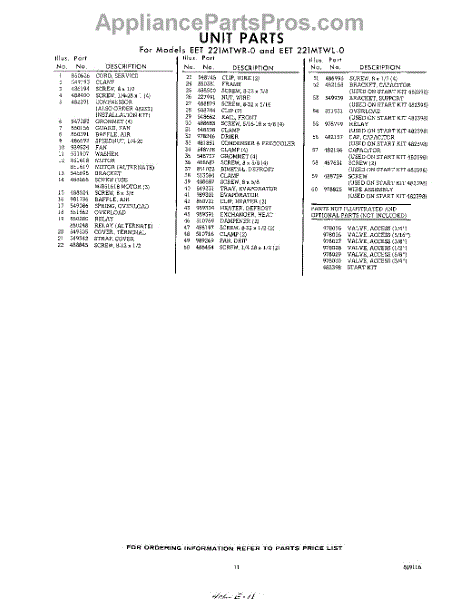 Parts for Whirlpool EET221MTWR0: 11 - Section Parts