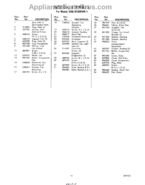 Parts for Whirlpool EHB191MKWR1: 11 - Section Parts