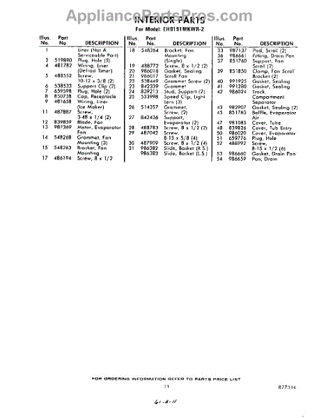 Parts for Whirlpool EHB191MKWR2: 11 - Section Parts