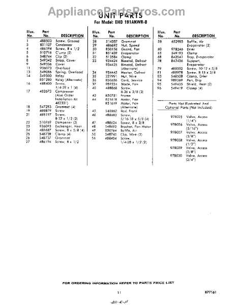 Parts for Whirlpool EHD191AKWR0: 11 - Section Parts