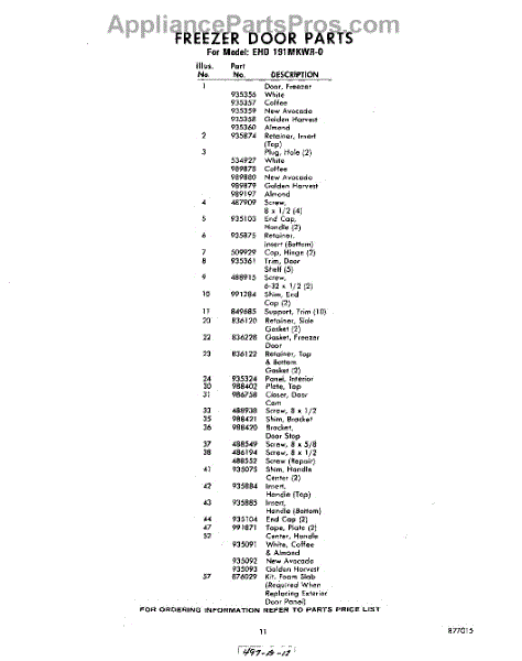 Parts for Whirlpool EHD191MKWR0: 11 - Section Parts