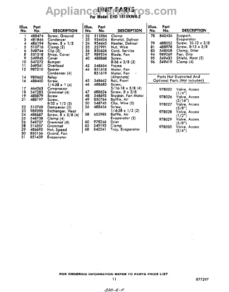 Parts for Whirlpool EHD191VKWR2: 11 - Section Parts