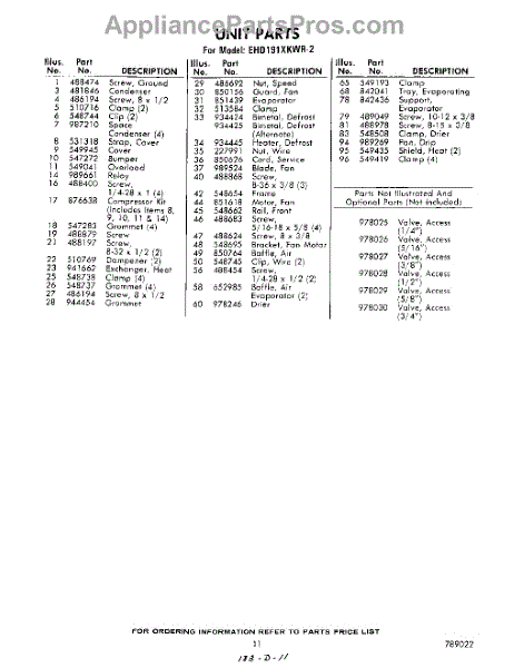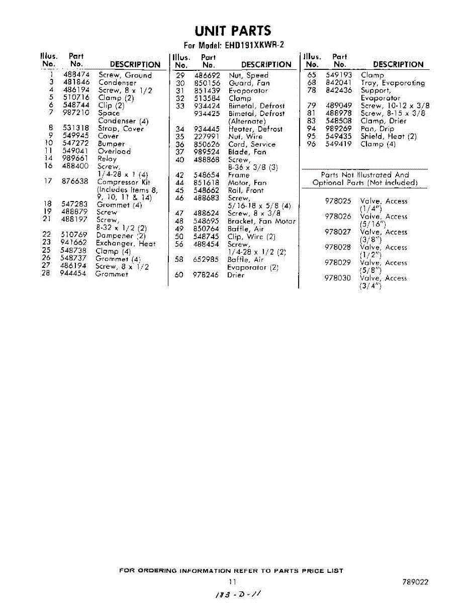 Parts for Whirlpool EHD191XKWR2: 11 - Section Parts