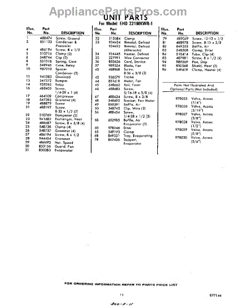 Parts for Whirlpool EHD221MKWR1: 11 - Section Parts