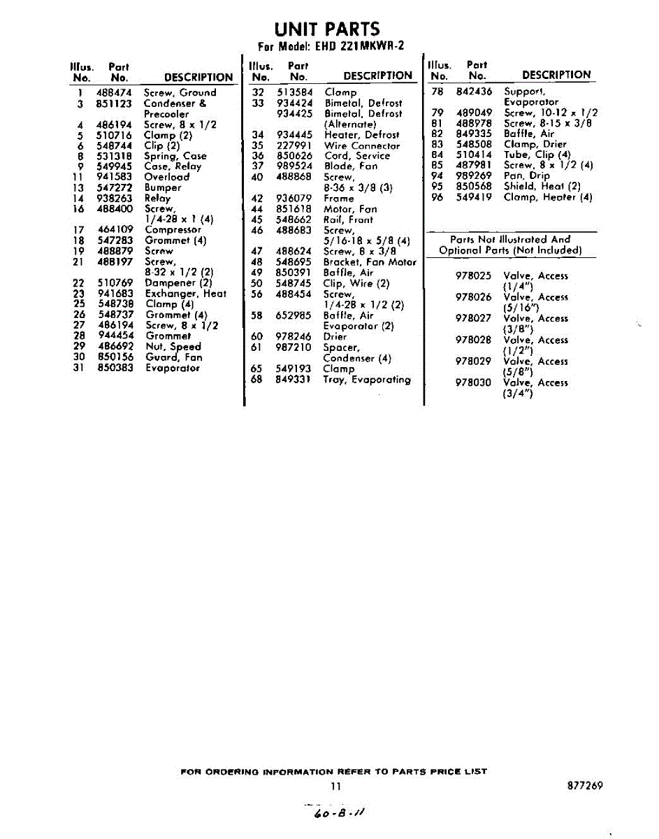 Parts for Whirlpool EHD221MKWR2: 11 - Section Parts