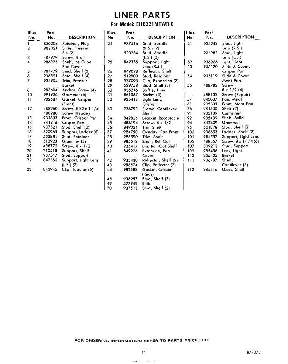 Parts for Whirlpool EHD221MTWR0: 11 - Section Parts